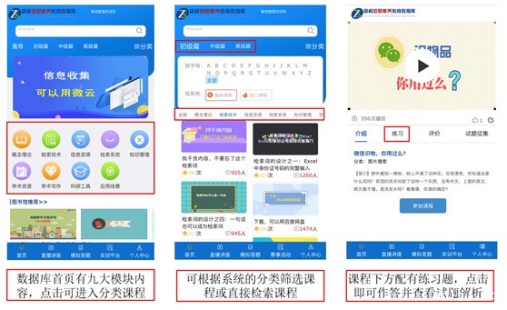 高校信息素养教育数据库是一款供高校师生学习信息检索、提升信息素养能力的专业视频类数据库。数据库涵盖了概念理论篇、检索技术篇、信息资源篇、检索系统篇、知识管理篇、学术资源篇、学术写作篇、科研工具篇、应用场景篇等九大模块培训课程,课程以动画微视频的方式,通过2-5分钟讲述一个信息素养的知识点,课程短小精悍、干货满满,便于读者利用碎片化时间学习。数据库还包含有练习题、专家讲座、PPT课件、特色专题等模块,全面聚焦信息素养教育资源。